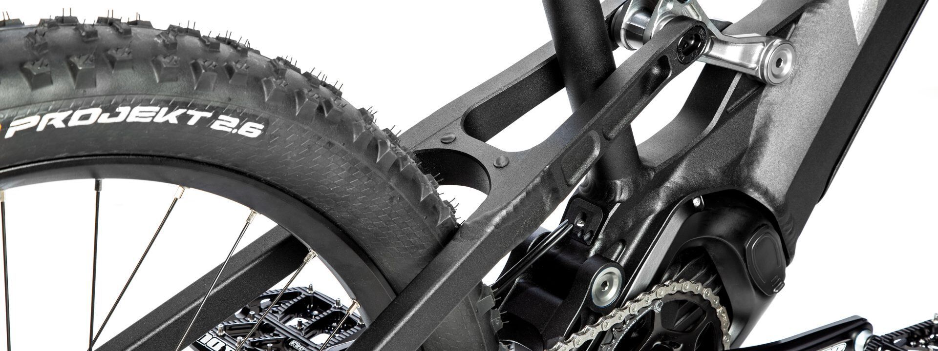 Neben der Geometrie ist das Fahrwerk eines Mountainbikes, insbesondere die Konstruktion des gefederten Hinterbaus, der wichtigste Faktor für Fahrspaß und Performance. Eine Vielzahl von Anforderungen müssen hierbei technisch gelöst werden. Um eine Kinematik zu erreichen, die eine wettkampfmäßige Performance und maximalen Spaß auf dem Trail bietet aber zugleich die Bewegungen des Fahrers von der Arbeit der Federung entkoppeln kann, konstruieren wir unsere 4-Gelenk-Hinterbauten schon lange nach dem bewährten Horst-Link-Prinzip.